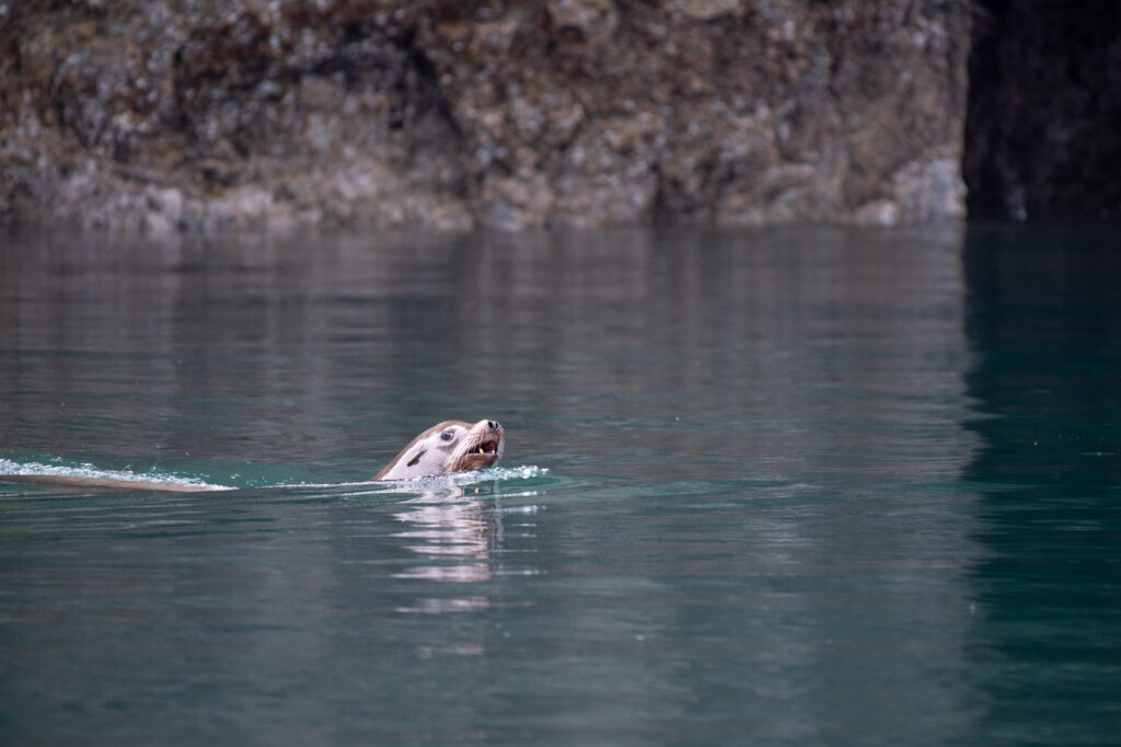 It’s hard to believe it’s past mid-November, and the kids have been back to school now for several months. A sea lion pops up just off the beach as I write this, breathing its hot steamy breath into the icy air. I can see it’s big, dopey eyes from here. They are very curious and friendly and check on us often. An aside, last night while taking the dingy from our main beach after a water haul back to its mooring, two sea lions came surprisingly close and were playfully watching us. They certainly add to the fun and excitement around here.