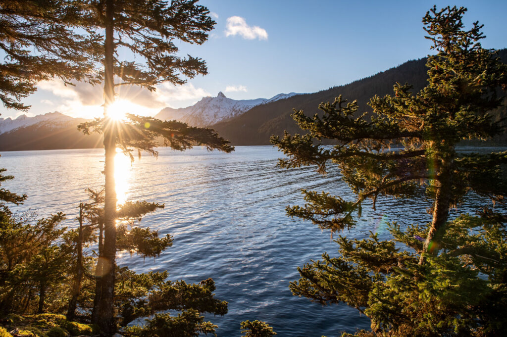 The sun is shining and finally above the mountains near 10 am. It only stays for a few hours before descending below the mountainous horizon across to the other side of the bay. It’s not a very large bay, maybe 0.25 miles wide where the cabin is nestled up. The cabin rests on a small peninsula about halfway up the bay. The view from where I sit writing this is of dramatic snow covered mountains, soft spruce filled coastline, and the blistery winter ocean.